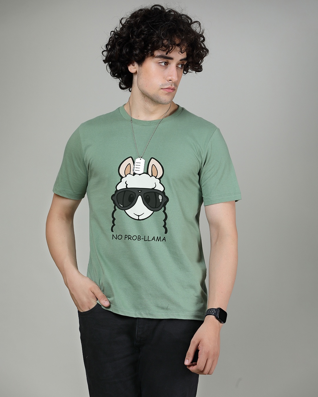 Men's Pastel Green No Probllama Graphic Printed T-shirt