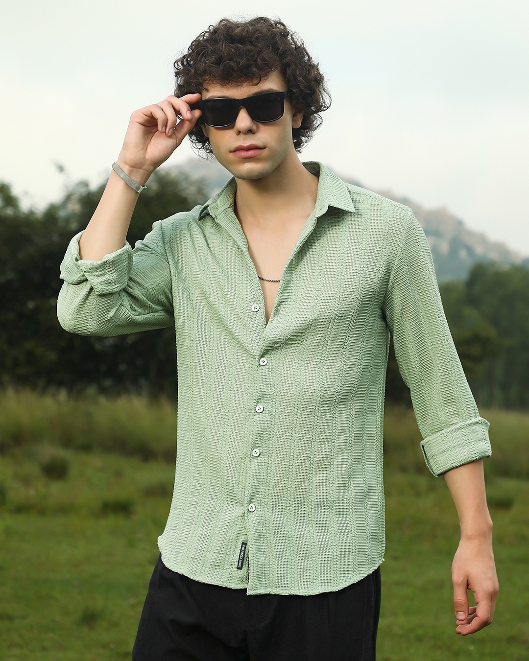 Men's Pastel Green Textured Shirt