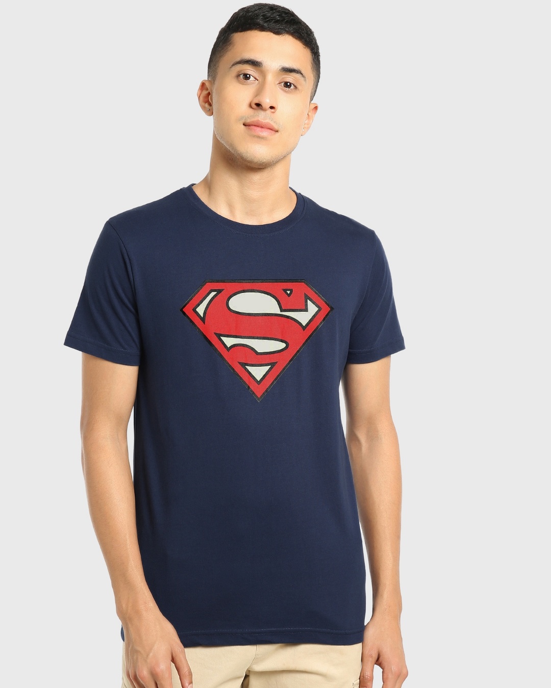 Men's Peageant Blue Superman Logo Graphic Printed T-shirt