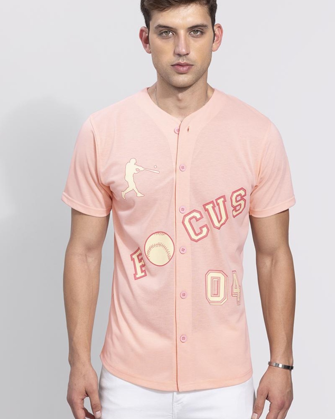 Men's Pink Focus Typography Slim Fit Baseball Shirt