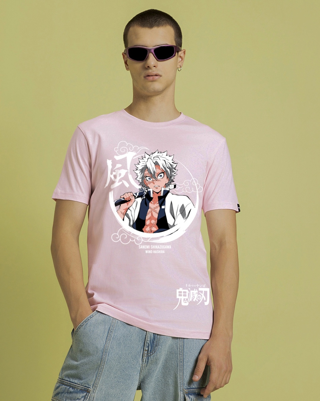 Men's Pink Wind Hashira Graphic Printed T-shirt
