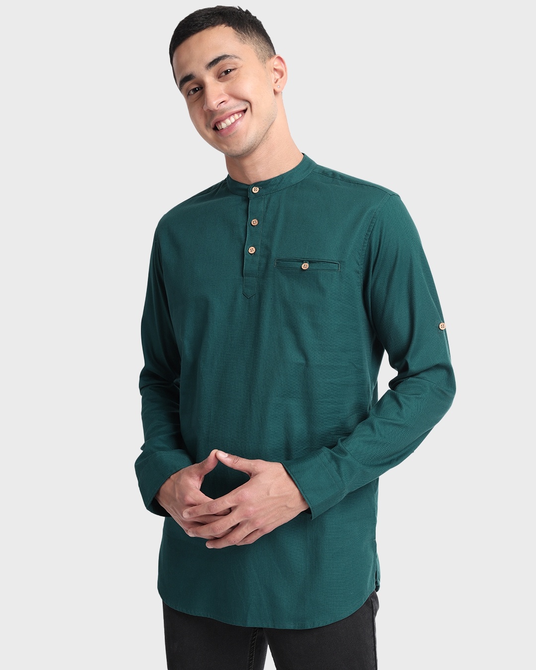 Men's Teal Green Plus Size Relaxed Fit Short Kurta