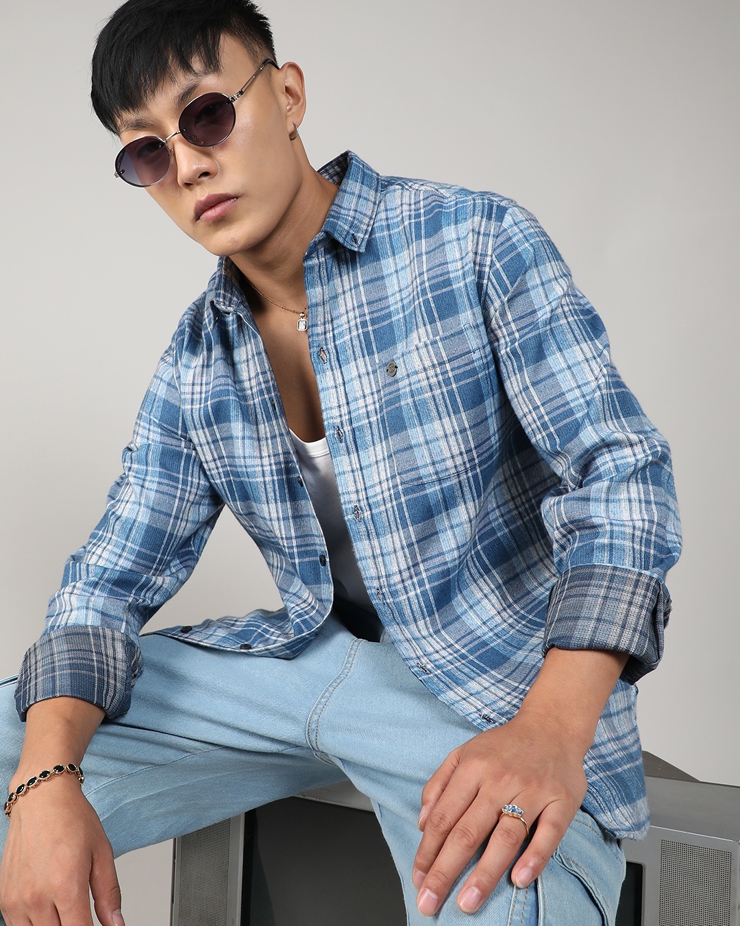 Men's Prussian Blue Checked Relaxed Fit Shirt