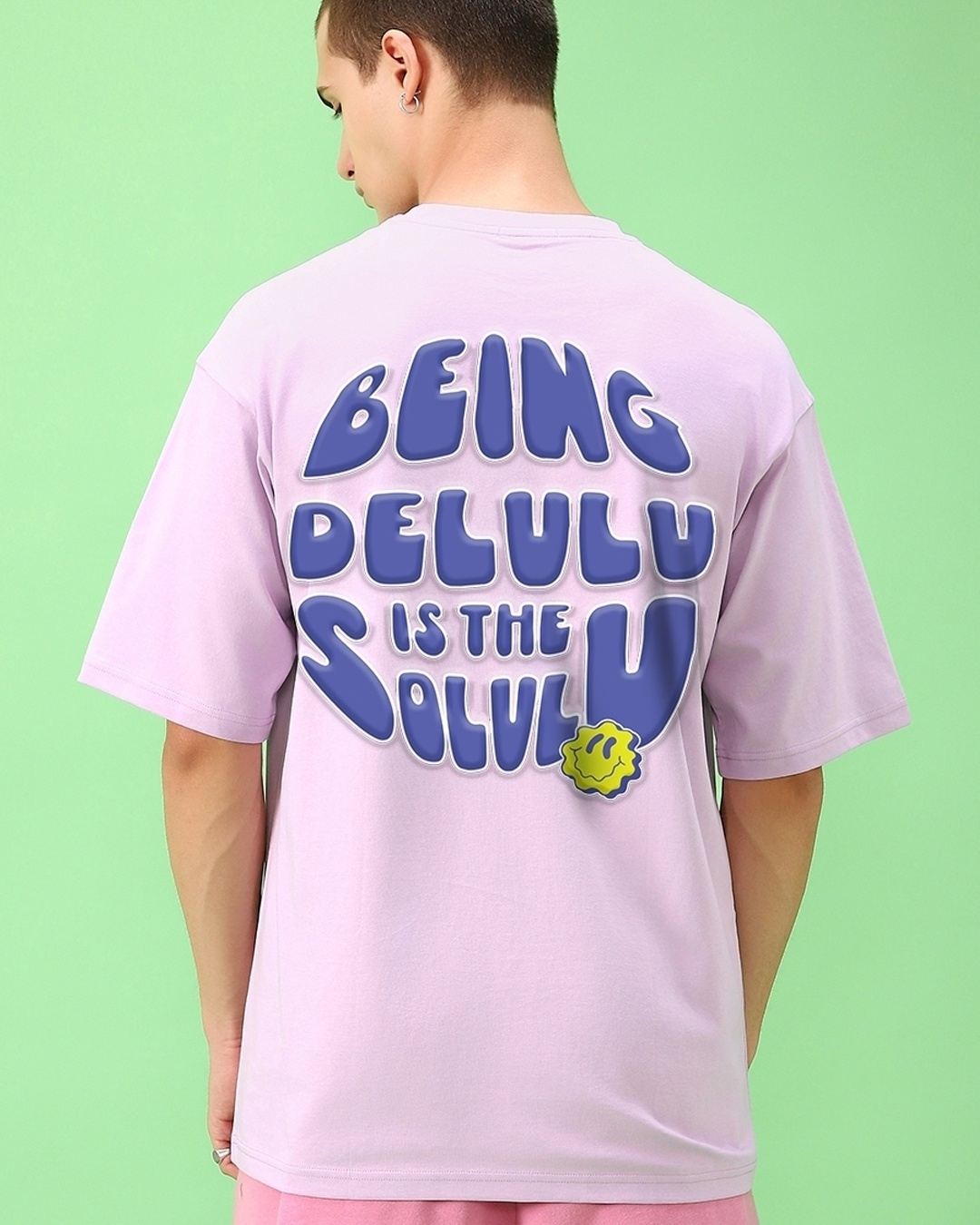 Men's Purple Being Delulu Is the Solulu Graphic Printed Oversized T-shirt