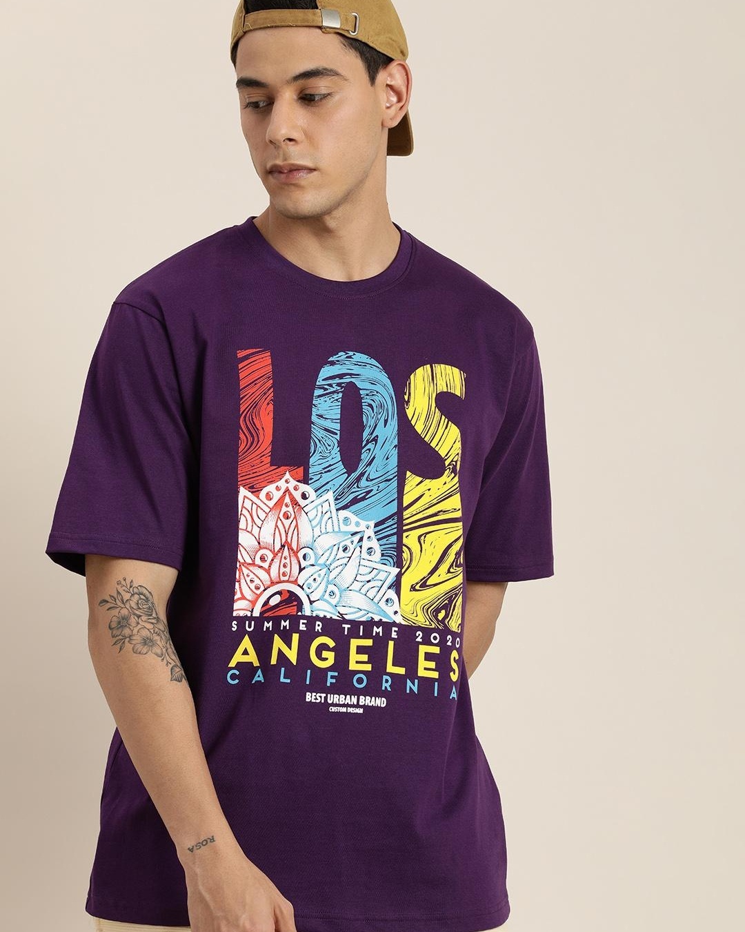 Men's Purple Graphic Printed Oversized T-shirt