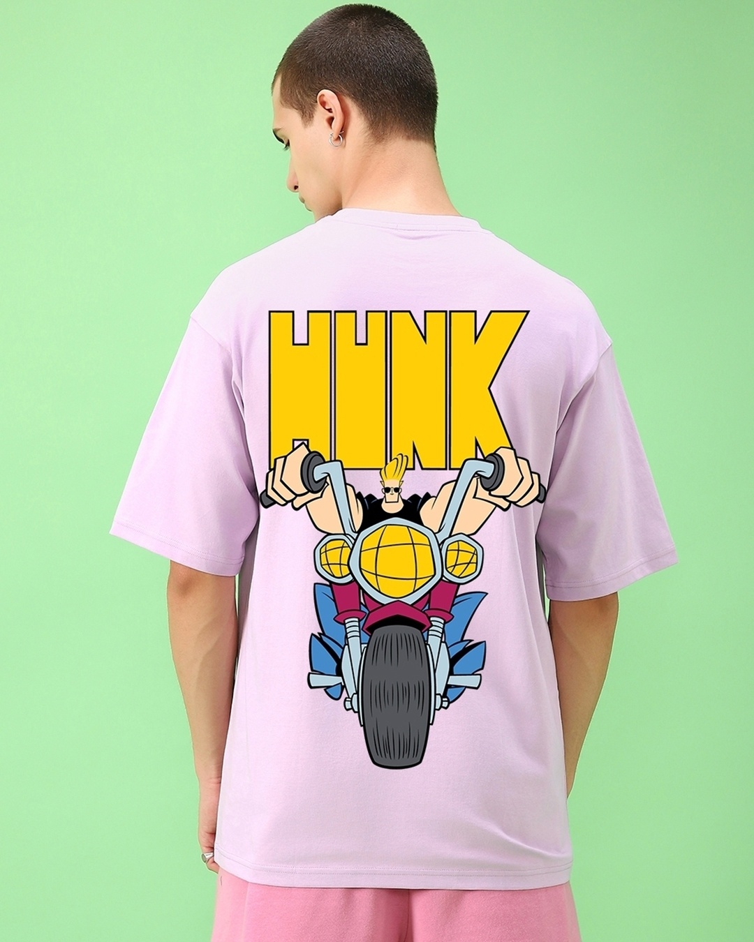 Men's Purple Johnny Bravo Graphic Printed Oversized T-shirt