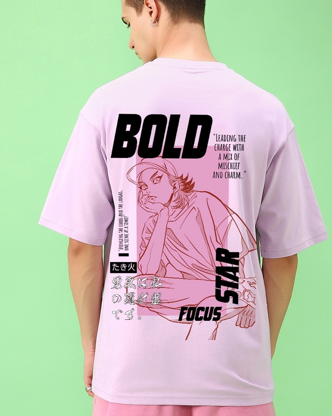 Men's Purple Main Character Energy Graphic Printed Oversized T-shirt