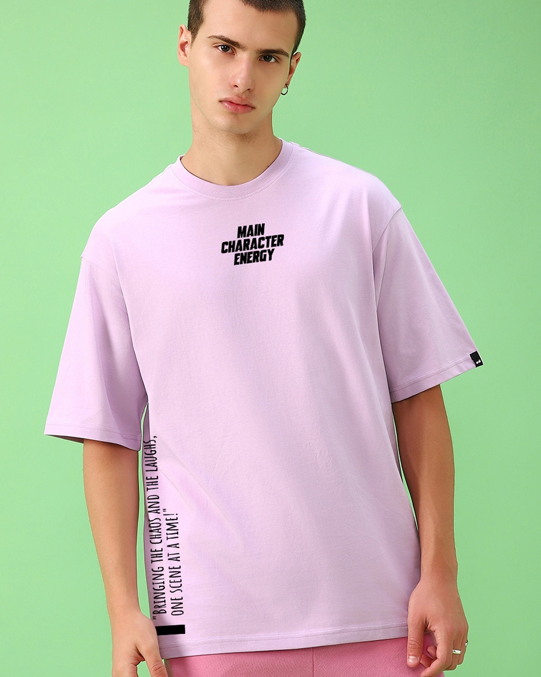 Men's Purple Main Character Energy Graphic Printed Oversized T-shirt