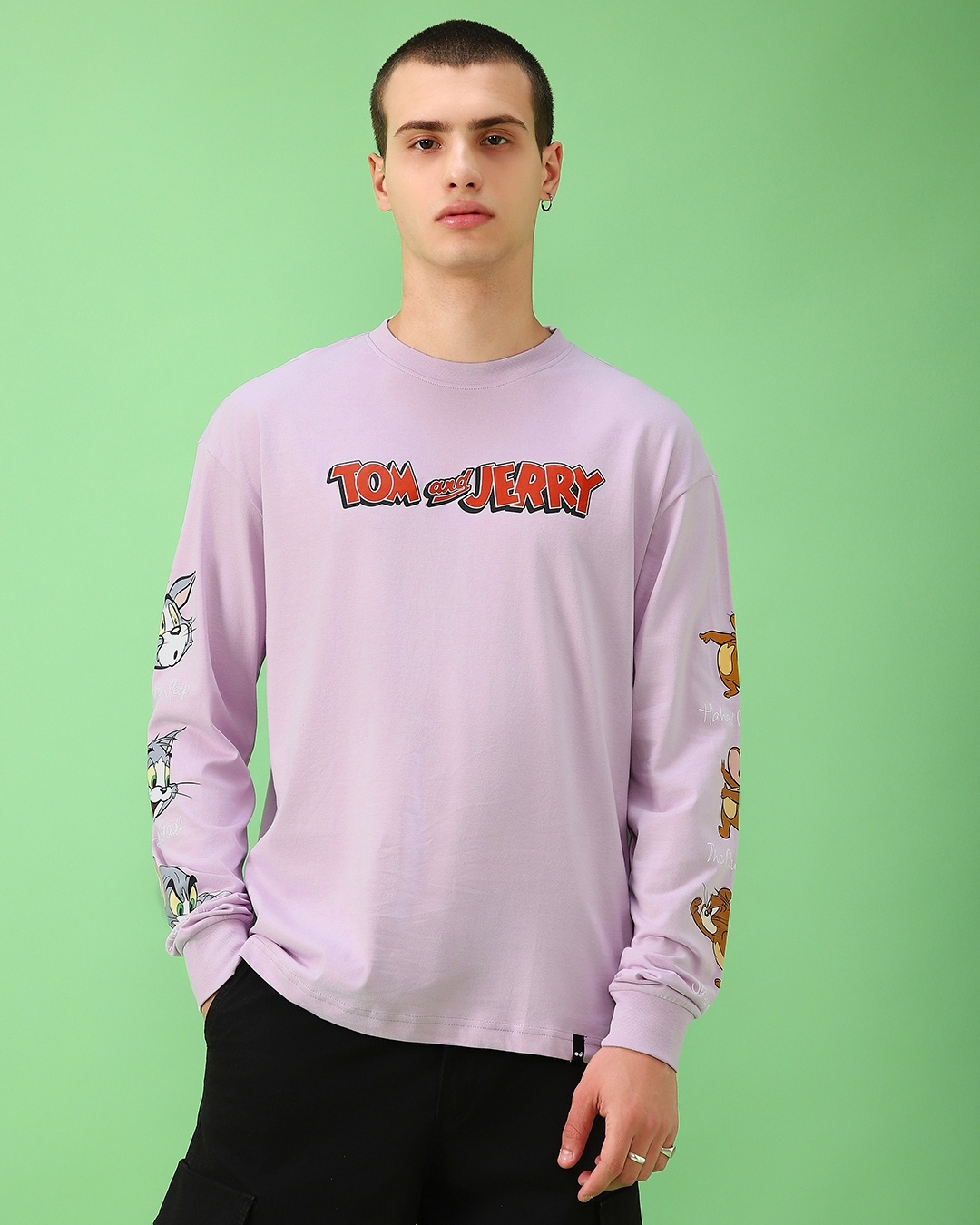 Men's Purple Oops T&J Graphic Printed Oversized T-shirt
