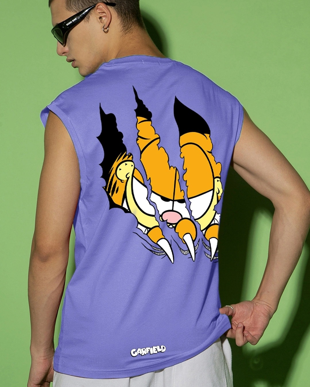Men's Baby Lavender Smiling Cat Graphic Printed Oversized Vest