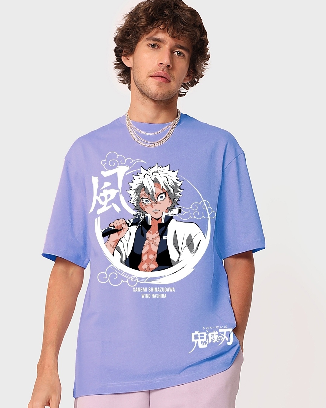 Men's Purple Wind Hashira Graphic Printed Oversized T-shirt
