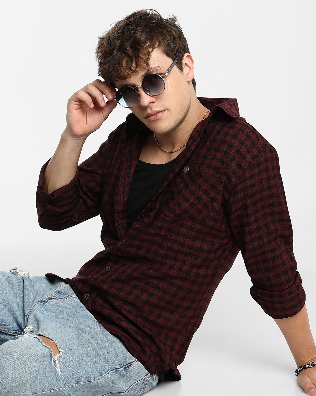Men's Maroon & Black Checked Shirt