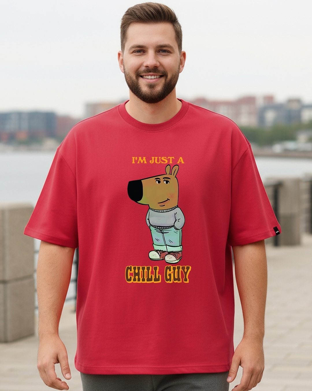 Men's Red Chill Guy Graphic Printed Oversized Plus Size T-shirt