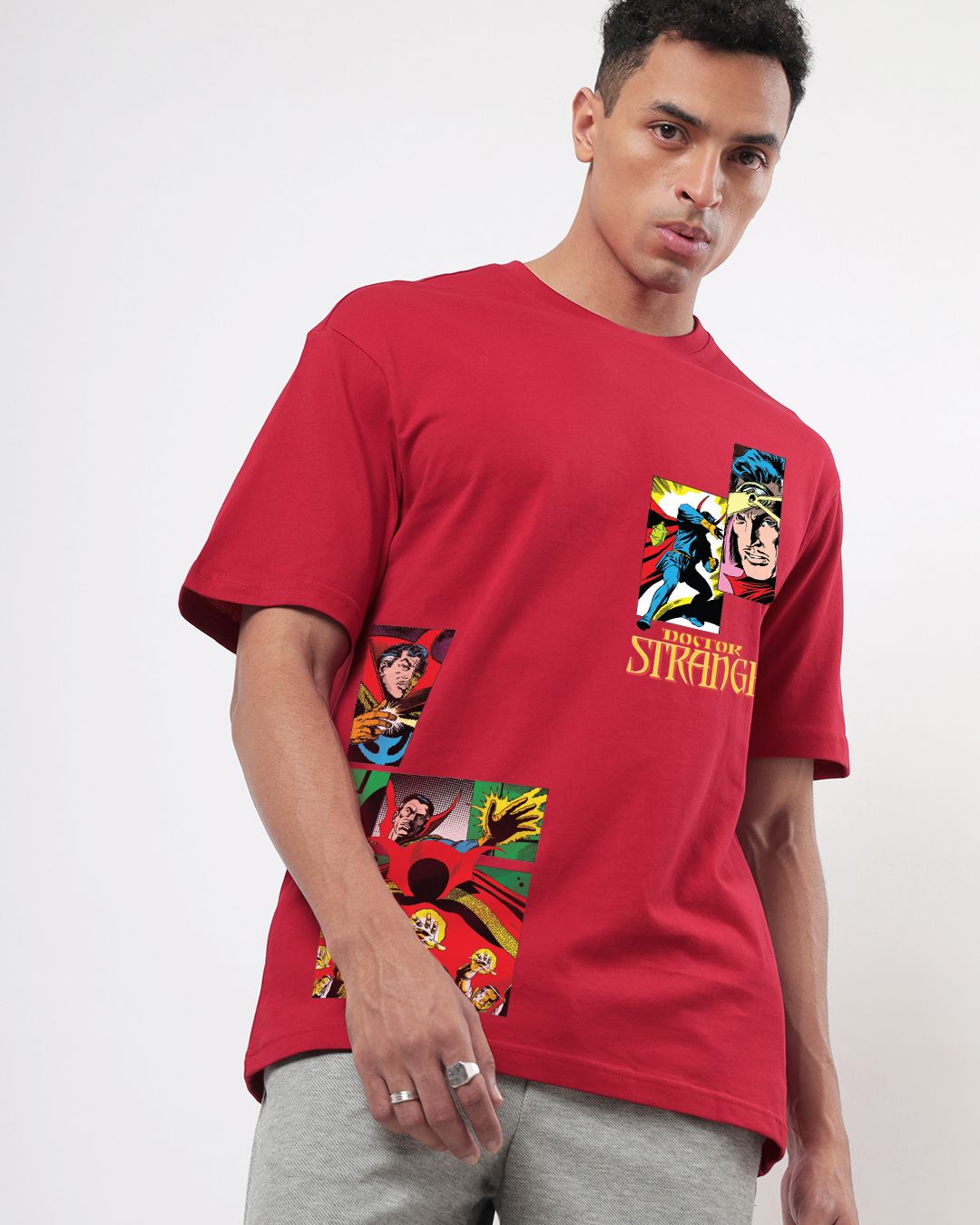 Men's Red Doctor Strange Graphic Printed Oversized T-shirt
