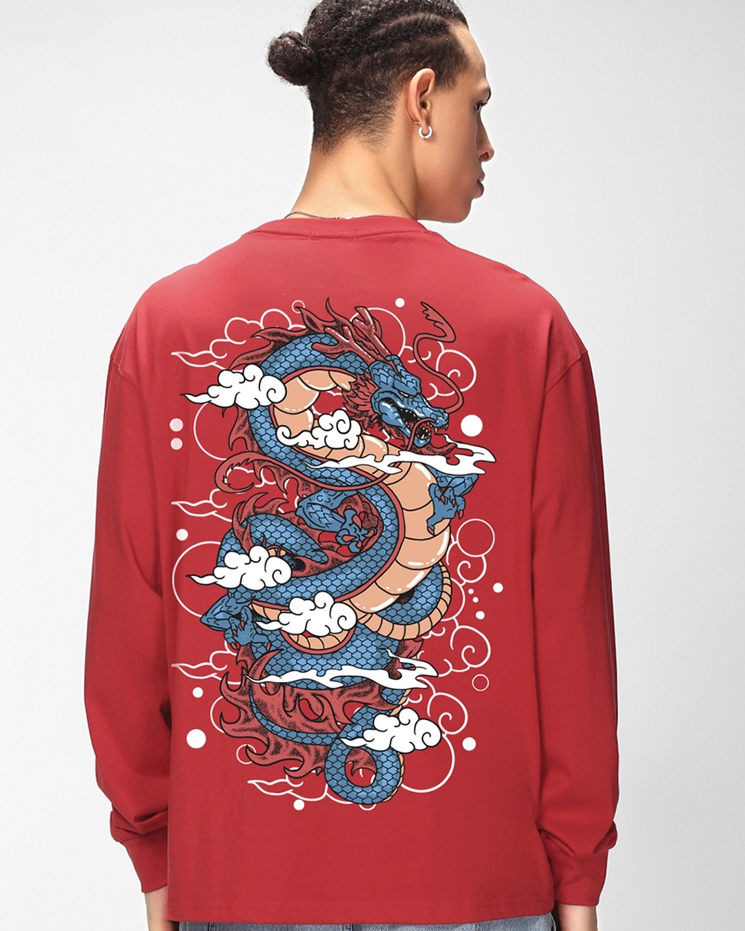 Men's Red Free Spirit Graphic Printed Oversized T-shirt