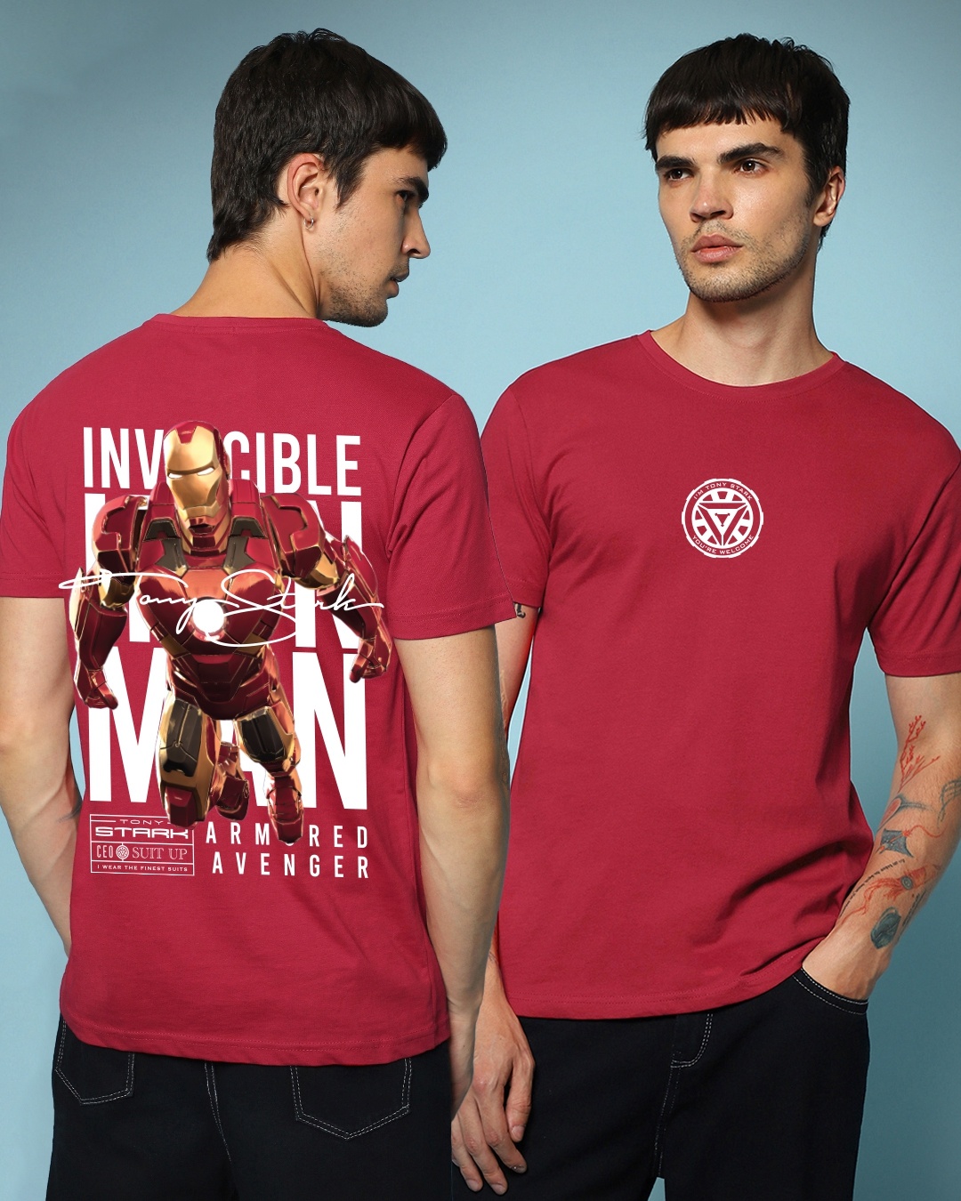 Men's Red Invincible Ironman Graphic Printed T-shirt