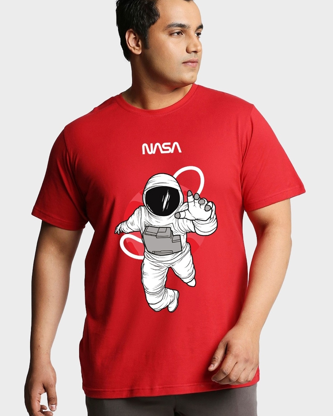 Men's Red NASA Astronaut Graphic Printed Oversized Plus Size T-shirt