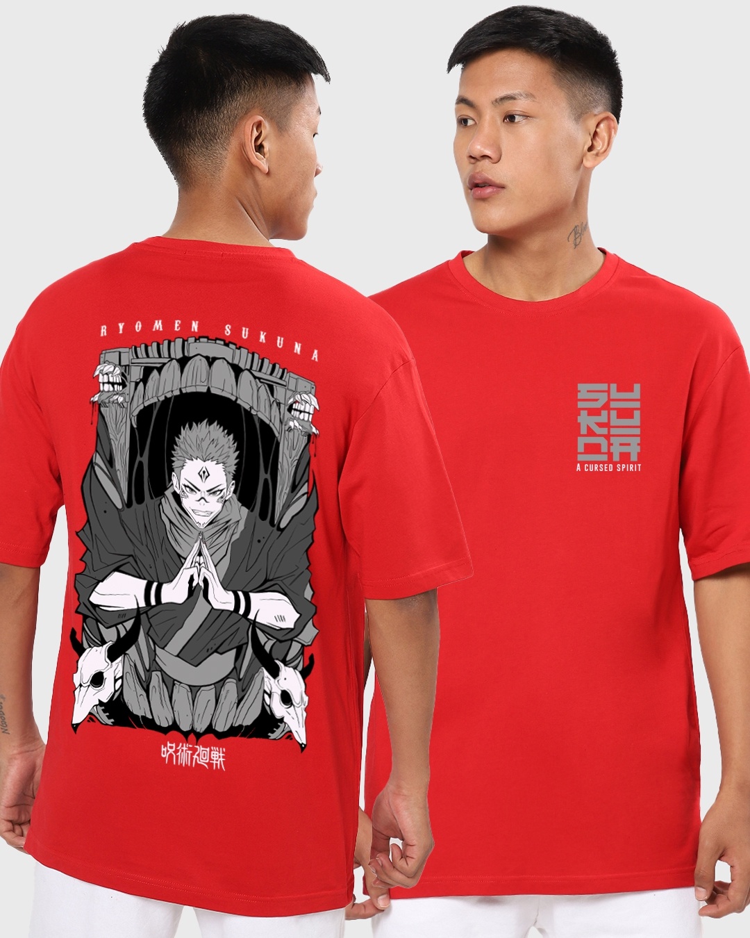 Men's Red Sukuna X Graphic Printed Oversized T-shirt