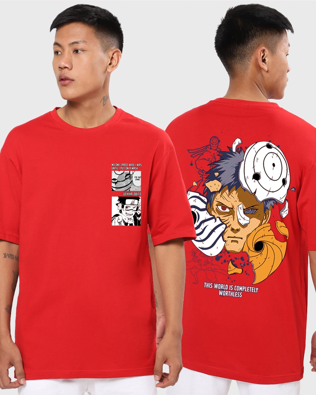 Men's Red Uchiha Obito Graphic Printed Oversized T-shirt