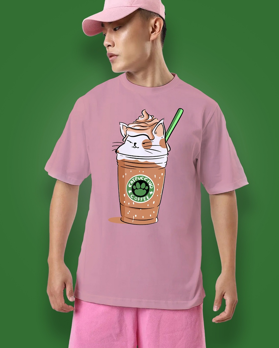 Men's Salmon Pink Graphic Printed Super Loose Fit T-shirt