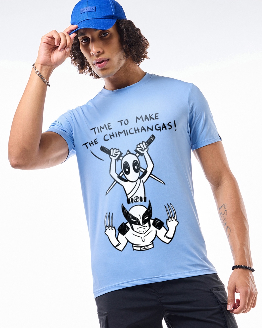 Men's Sea Blue New Team Graphic Printed T-shirt