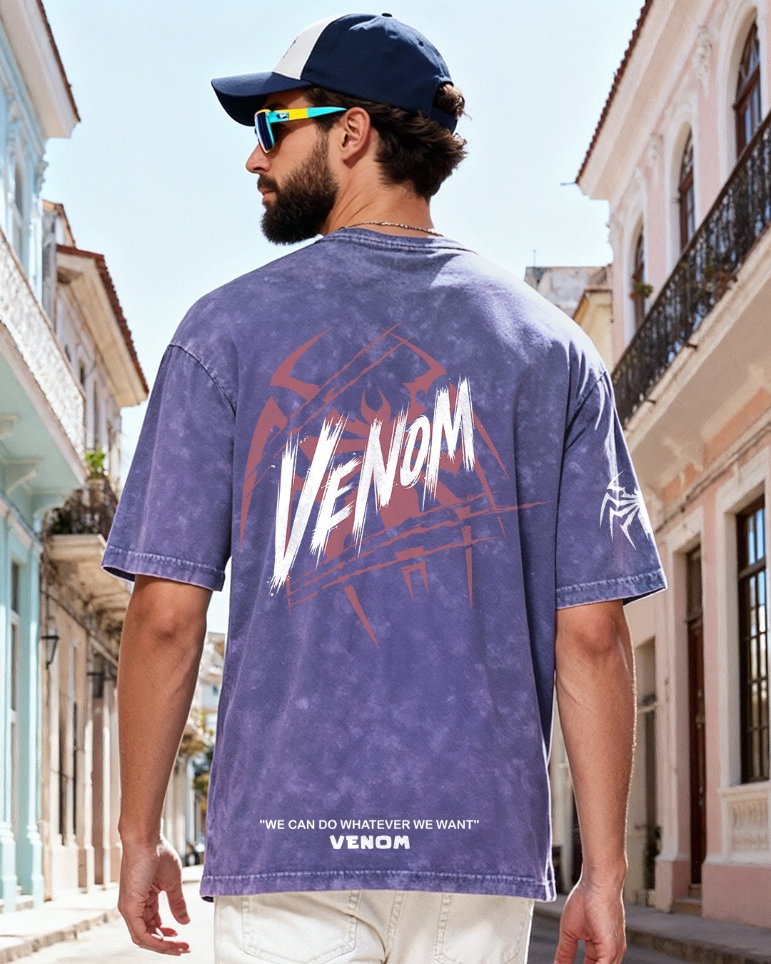 Men's Skipper Blue Venom Graphic Printed Oversized Acid Wash T-shirt