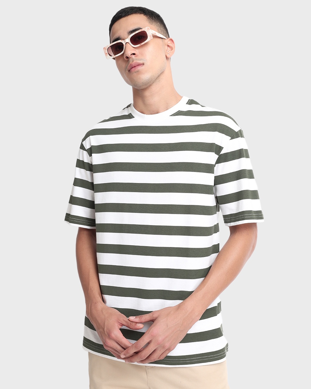 Men's White Striped Oversized T-shirt