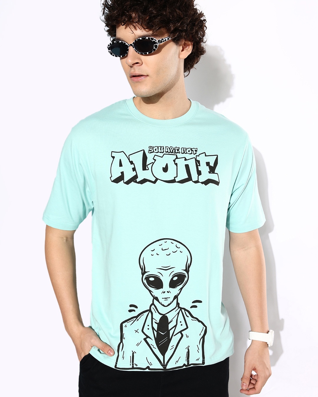 Men's Turquoise Blue Graphic Printed Oversized T-shirt