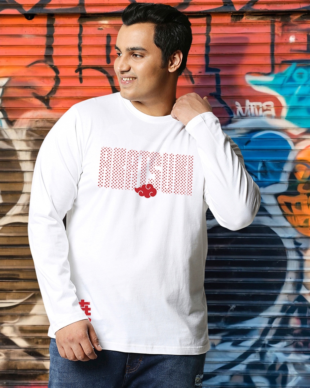 Men's White Akatsuki Origin Graphic Printed Oversized Plus Size T-shirt