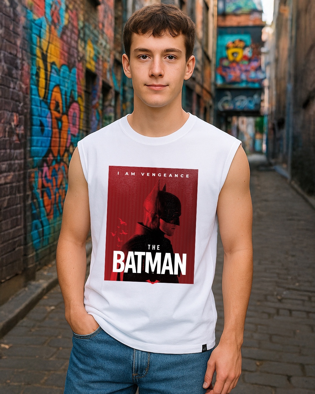 Men's White Batman Poster Graphic Printed Boxy Fit Vest