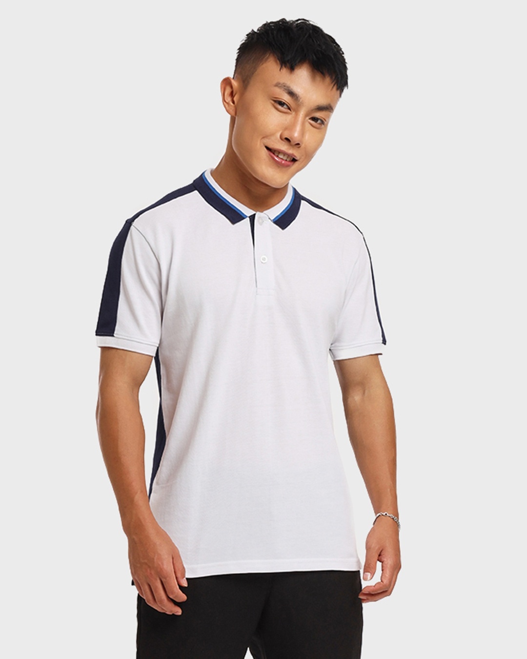 Men's White & Blue Color Block Polo T-shirt