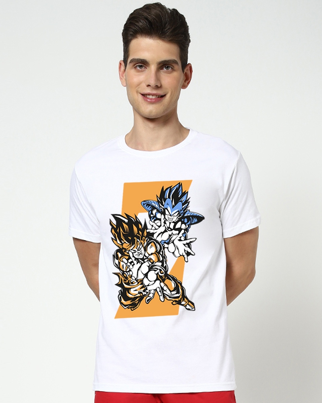 Men's White Fighter Z Graphic Printed T-shirt