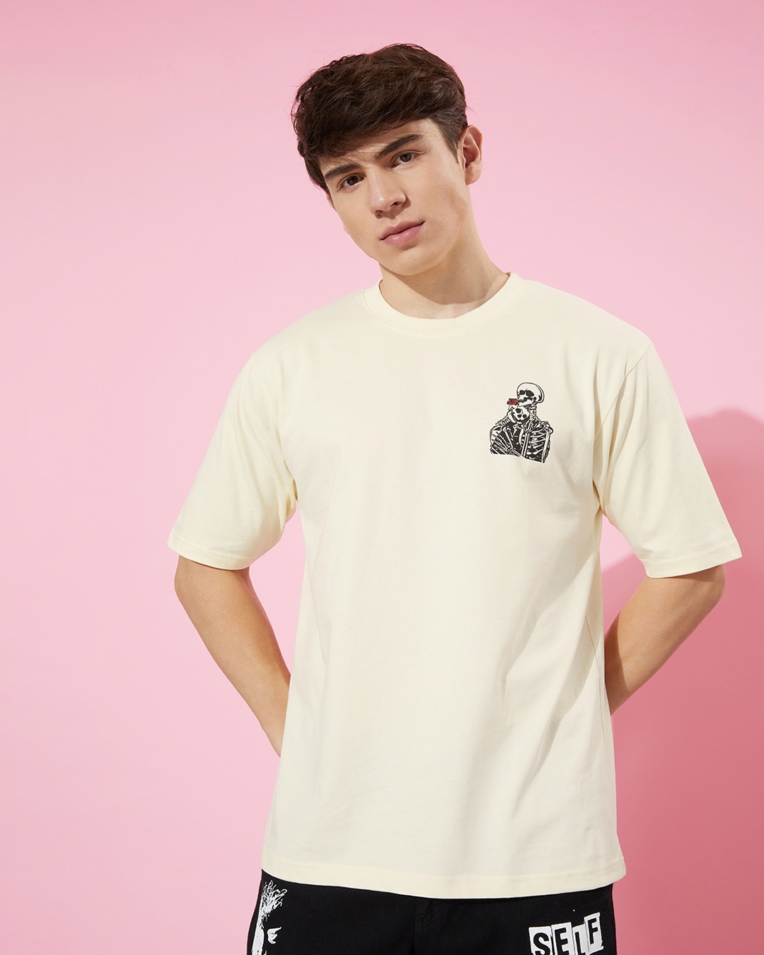 Men's White Graphic Printed Oversized T-shirt