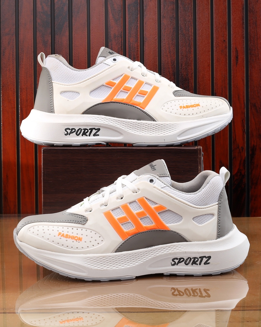 Men's White & Grey Color Block Casual Shoes