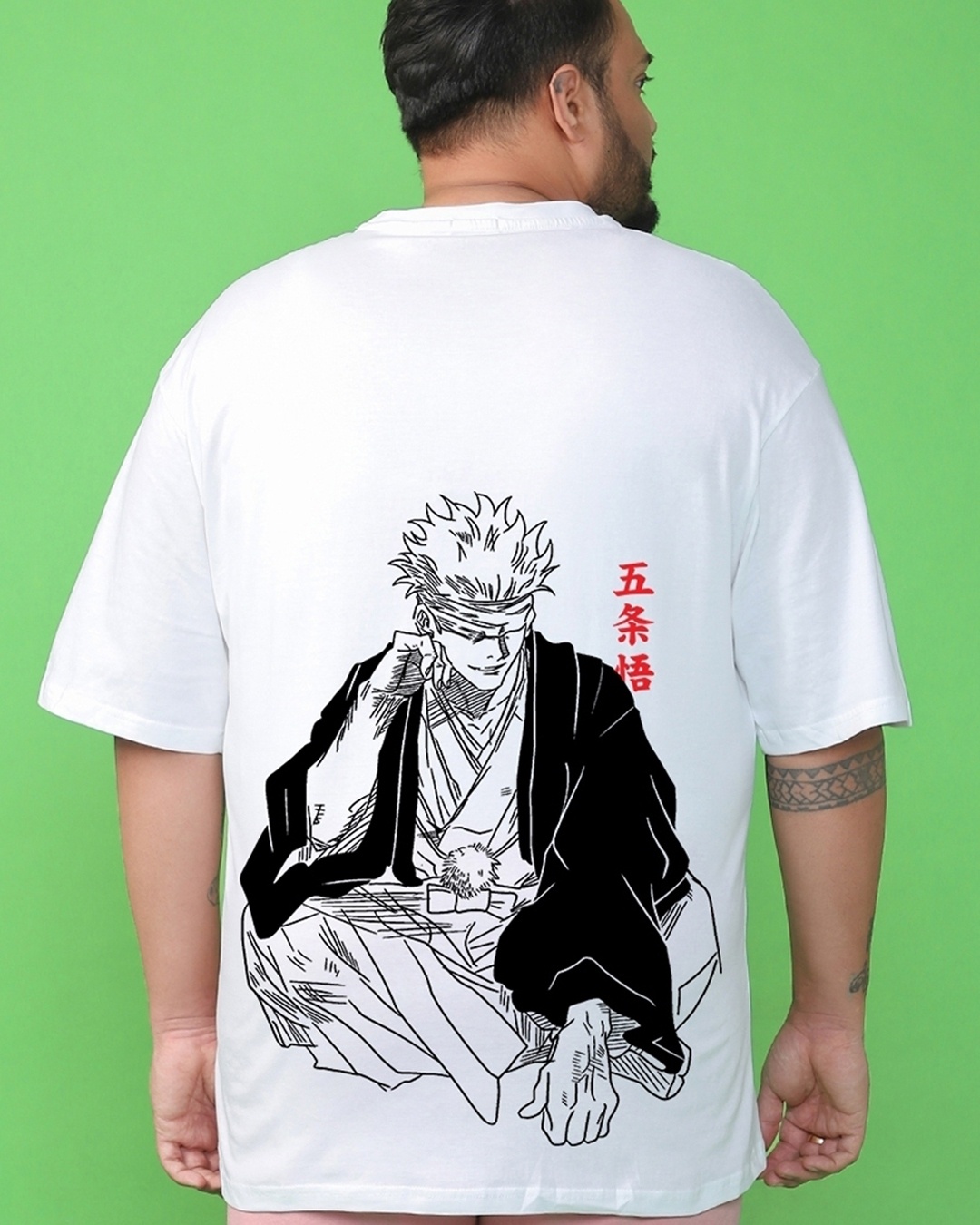 Men's White Jujutsu Sorcerer Graphic Print Oversized Plus Size T-shirt