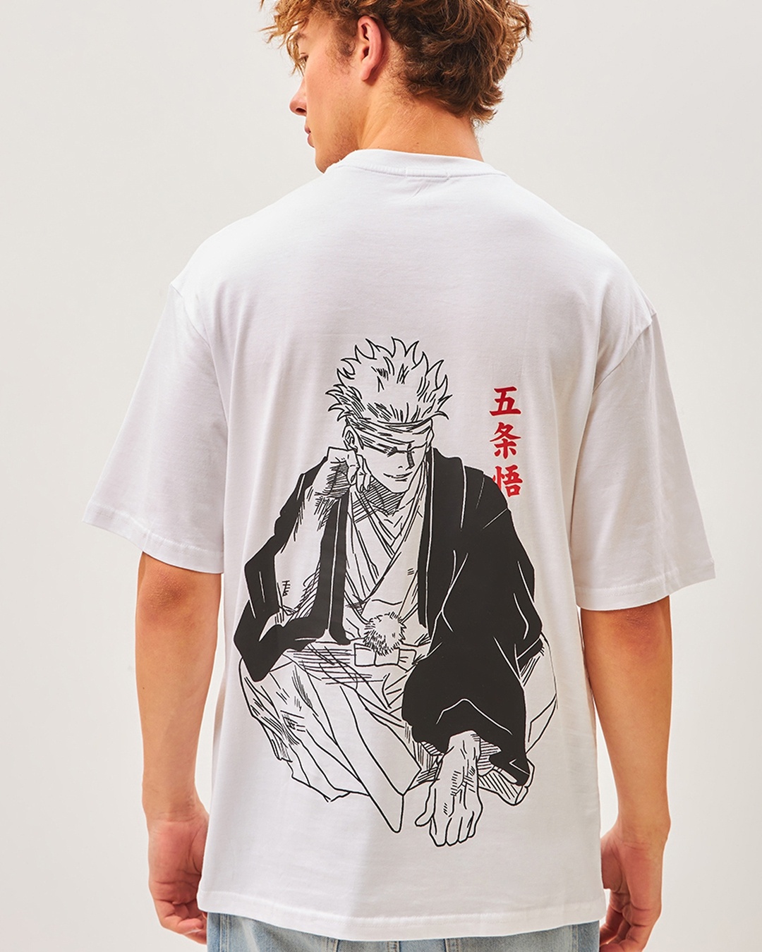 Men's White Jujutsu Sorcerer Graphic Printed Oversized T-shirt