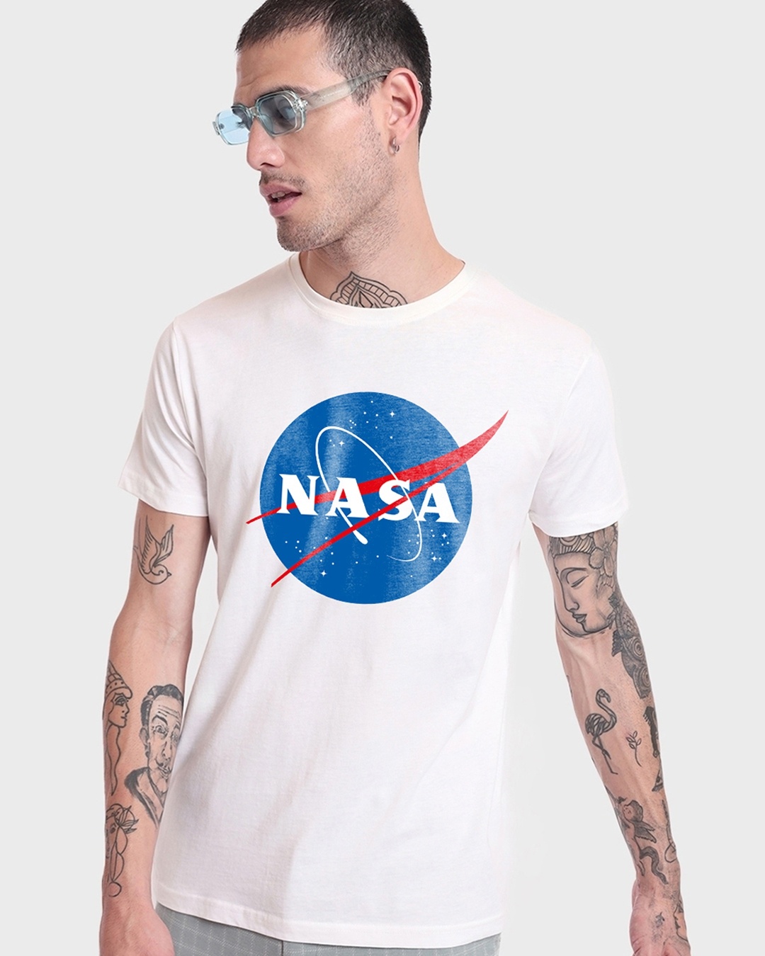 Men's White NASA Meatball Logo Graphic Printed T-shirt