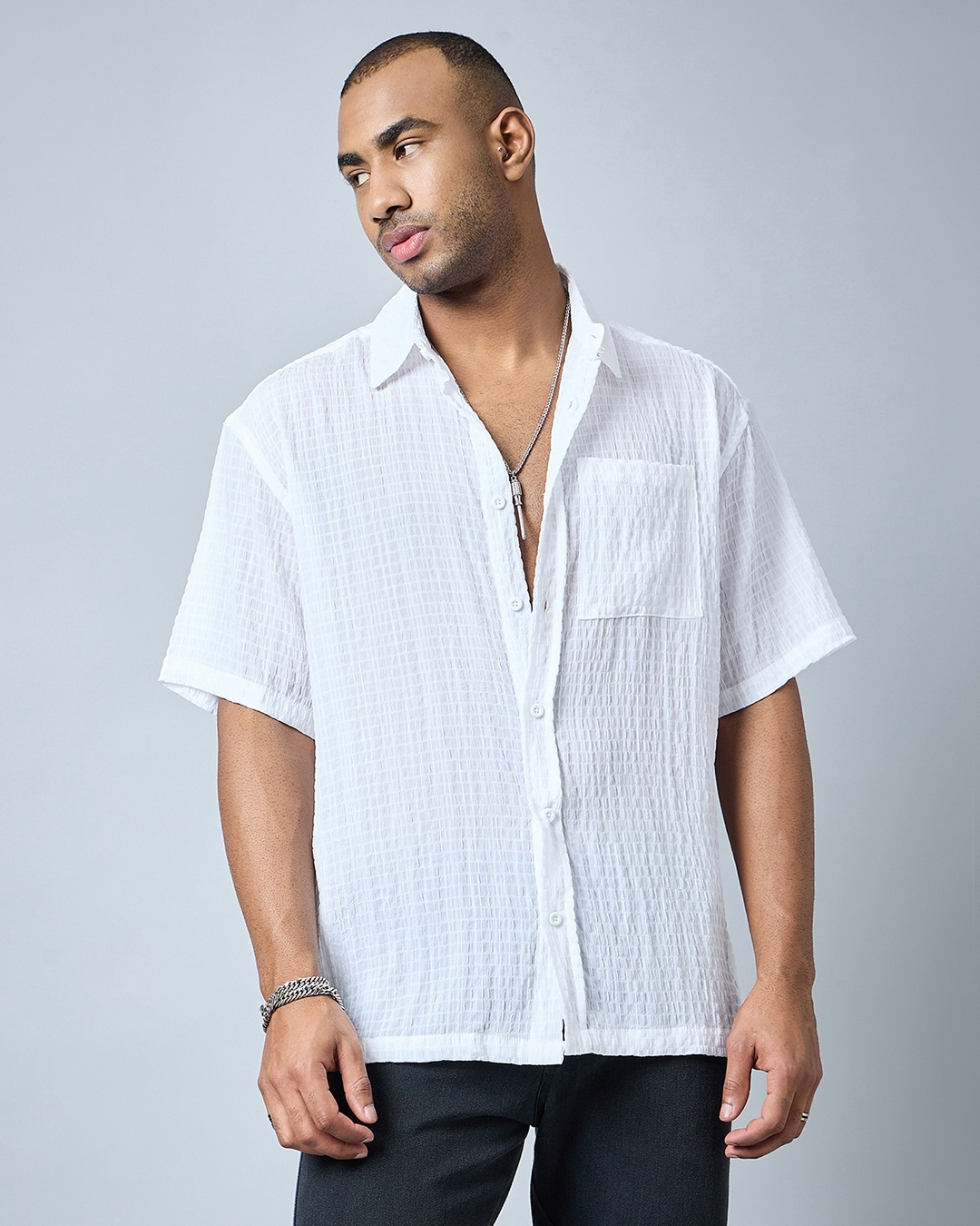 Men's White Oversized Textured Shirt