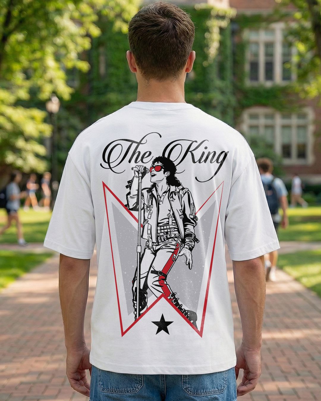 Men's White Pop King Graphic Printed Oversized T-shirt