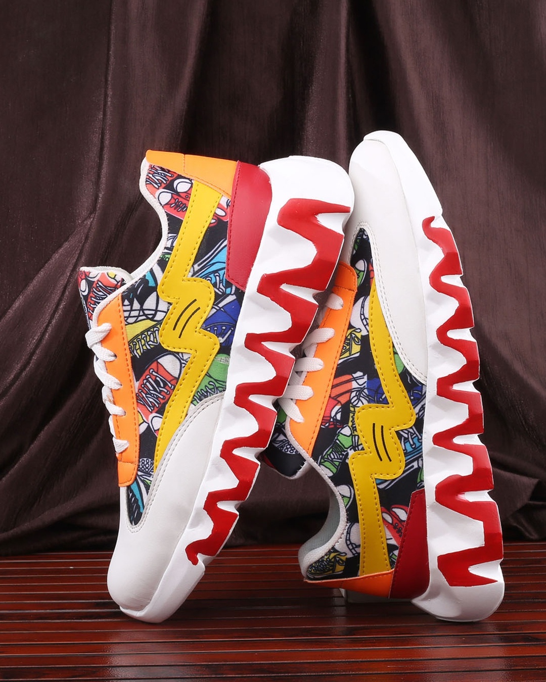Men's White Printed Sneakers