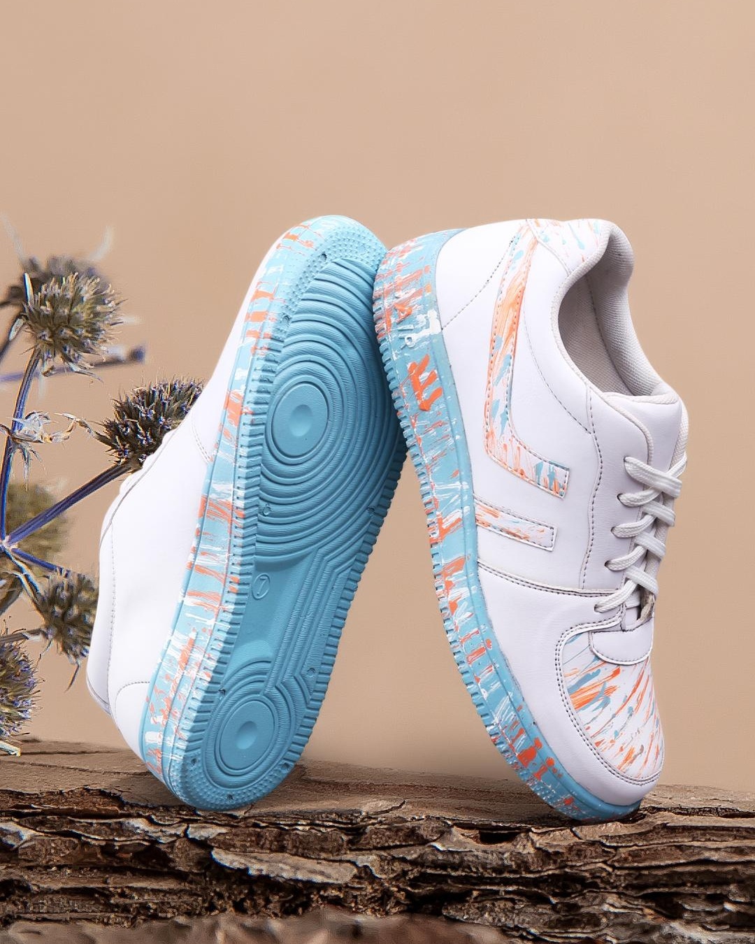 Men's White Printed Sneakers