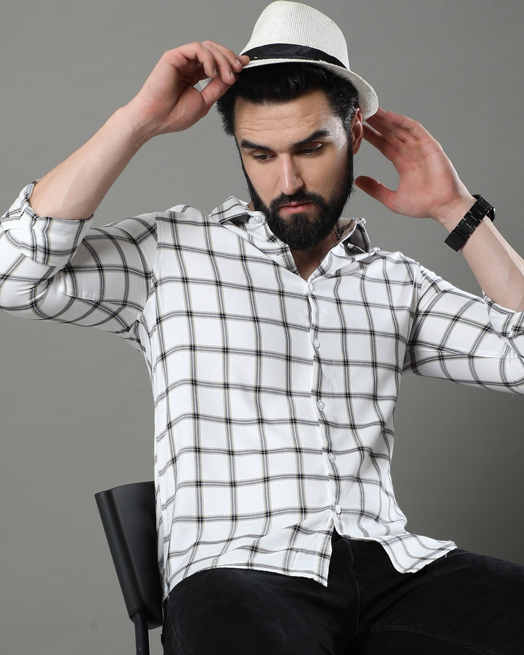Men's White Checked Shirt