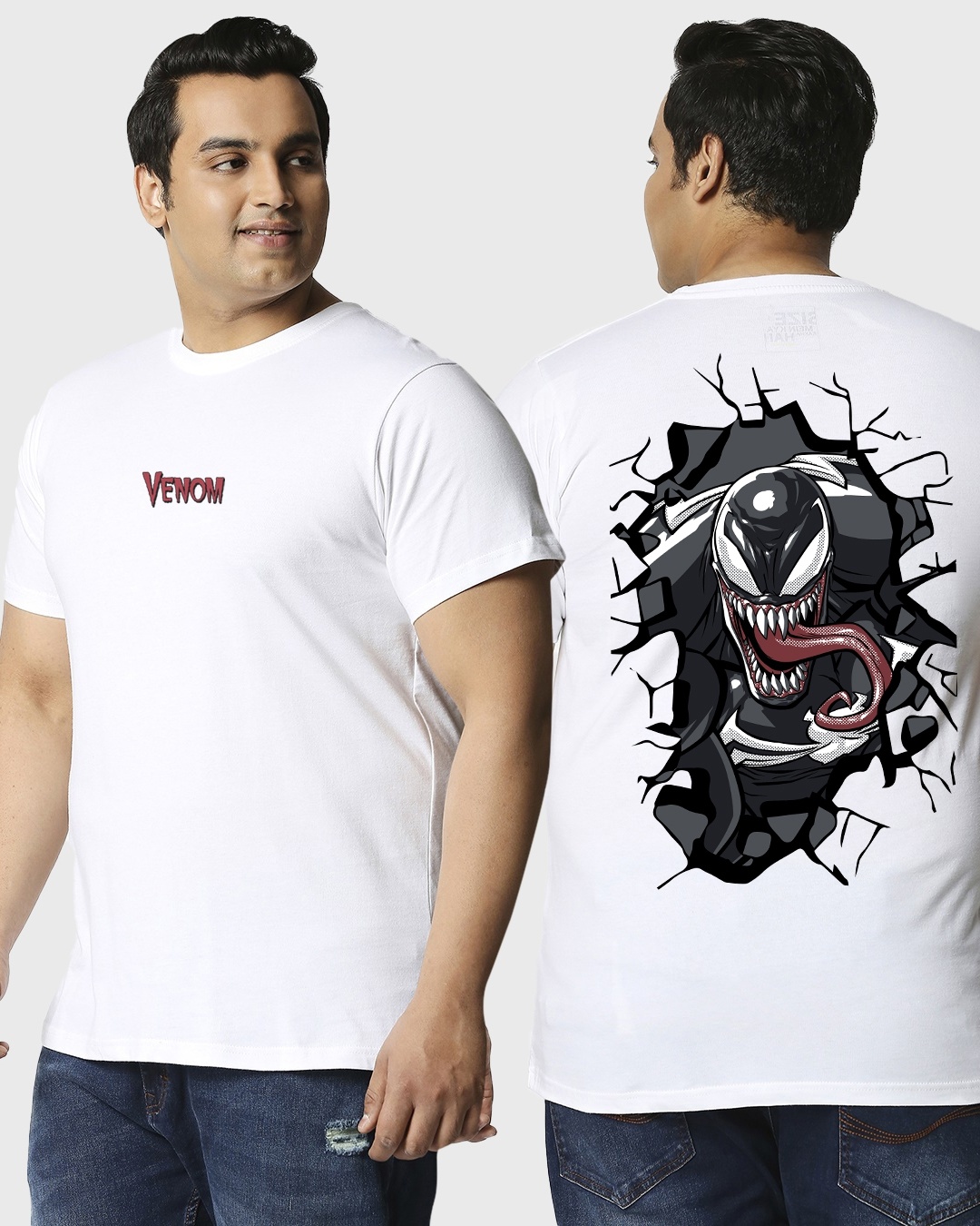 Men's White Venom Street Graphic Printed Plus Size Oversized T-shirt