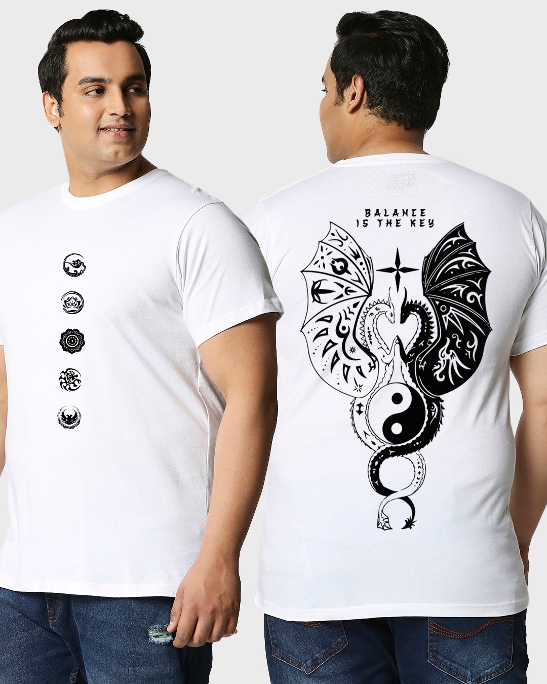 Men's White Seek Balance Graphic Printed Plus Size T-shirt
