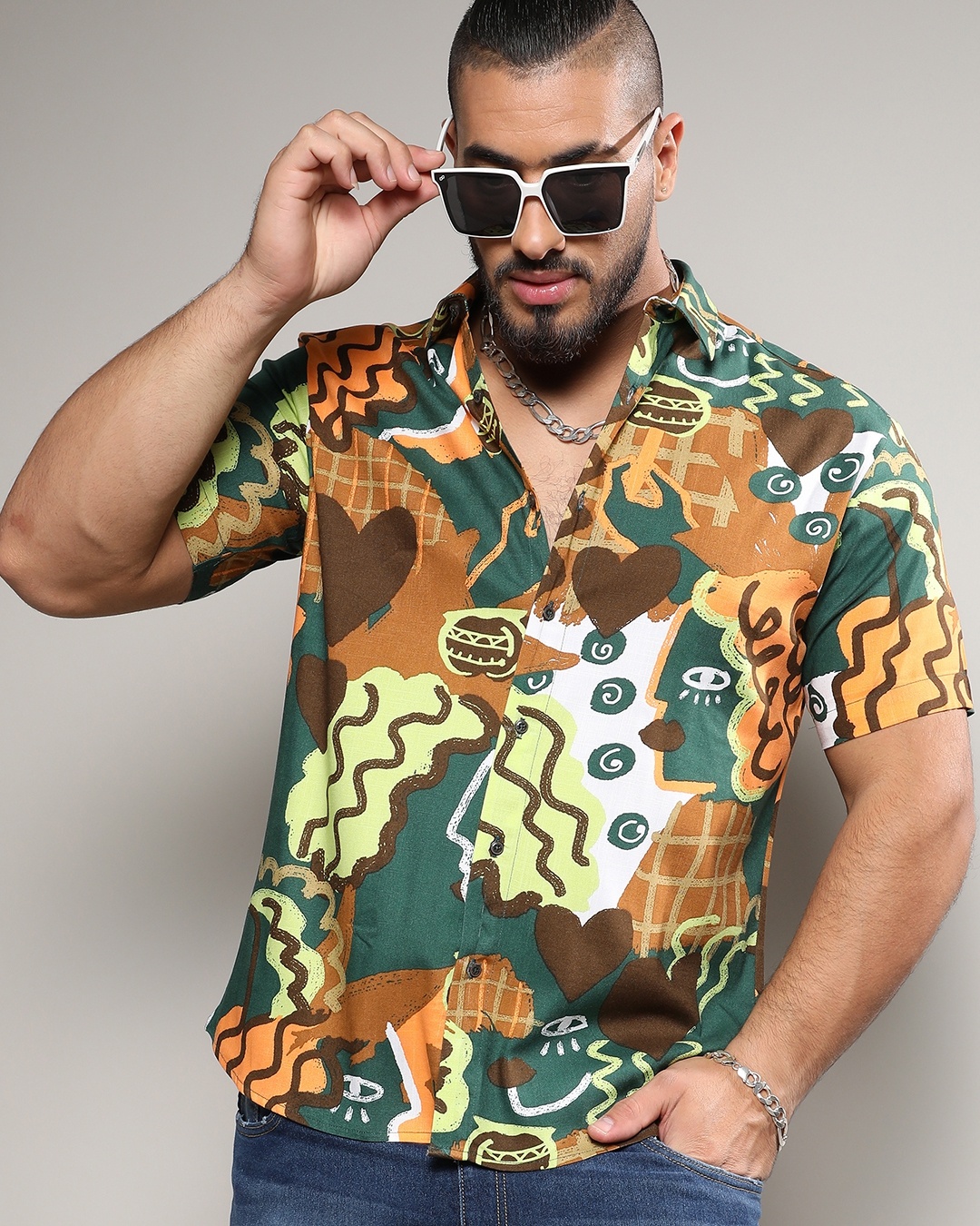Men's Yellow & Green All Over Printed Oversized Plus Size Shirt