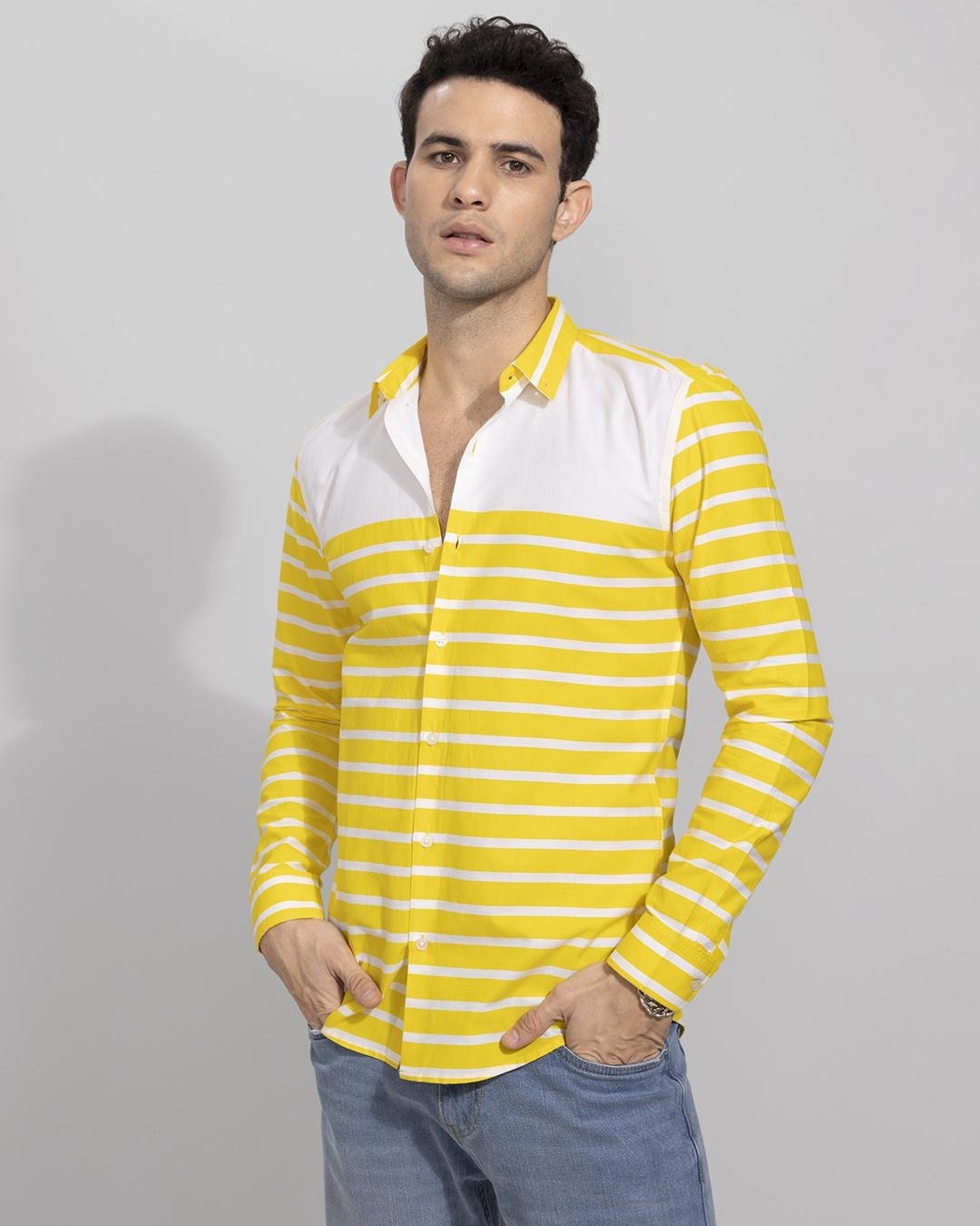 Men's Yellow Striped Slim Fit Shirt