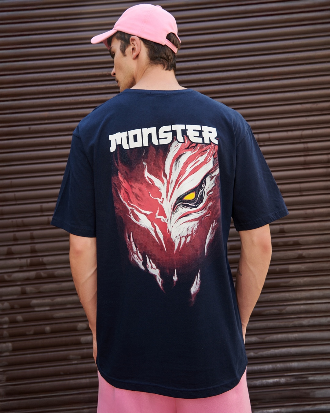 Men's Blue Monster Graphic Printed Oversized T-shirt