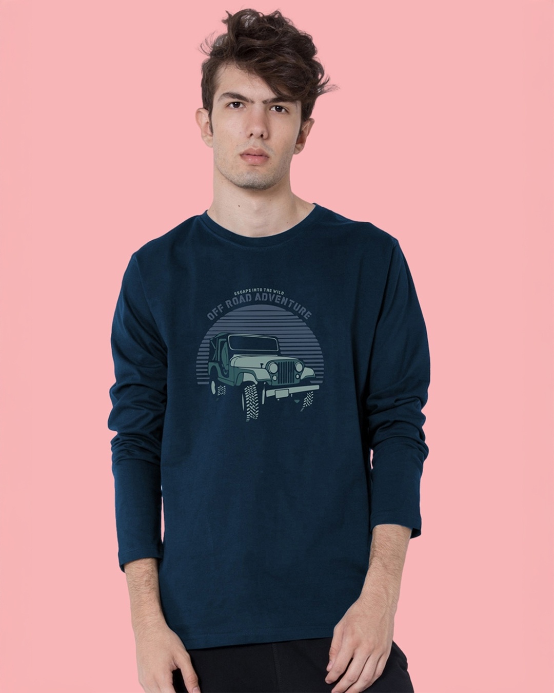 Men's Blue Off Road Jeep Graphic Printed T-shirt