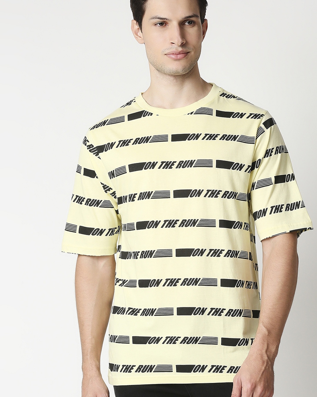 Men's Yellow On The Run All Over Printed Relaxed Fit T-shirt