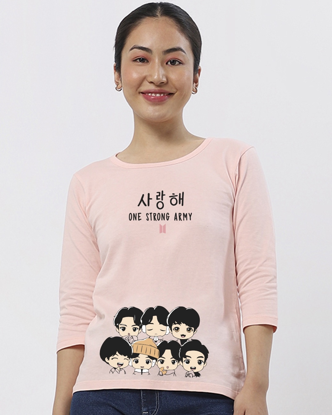 Women's Pink One Strong Army Graphic Printed T-shirt
